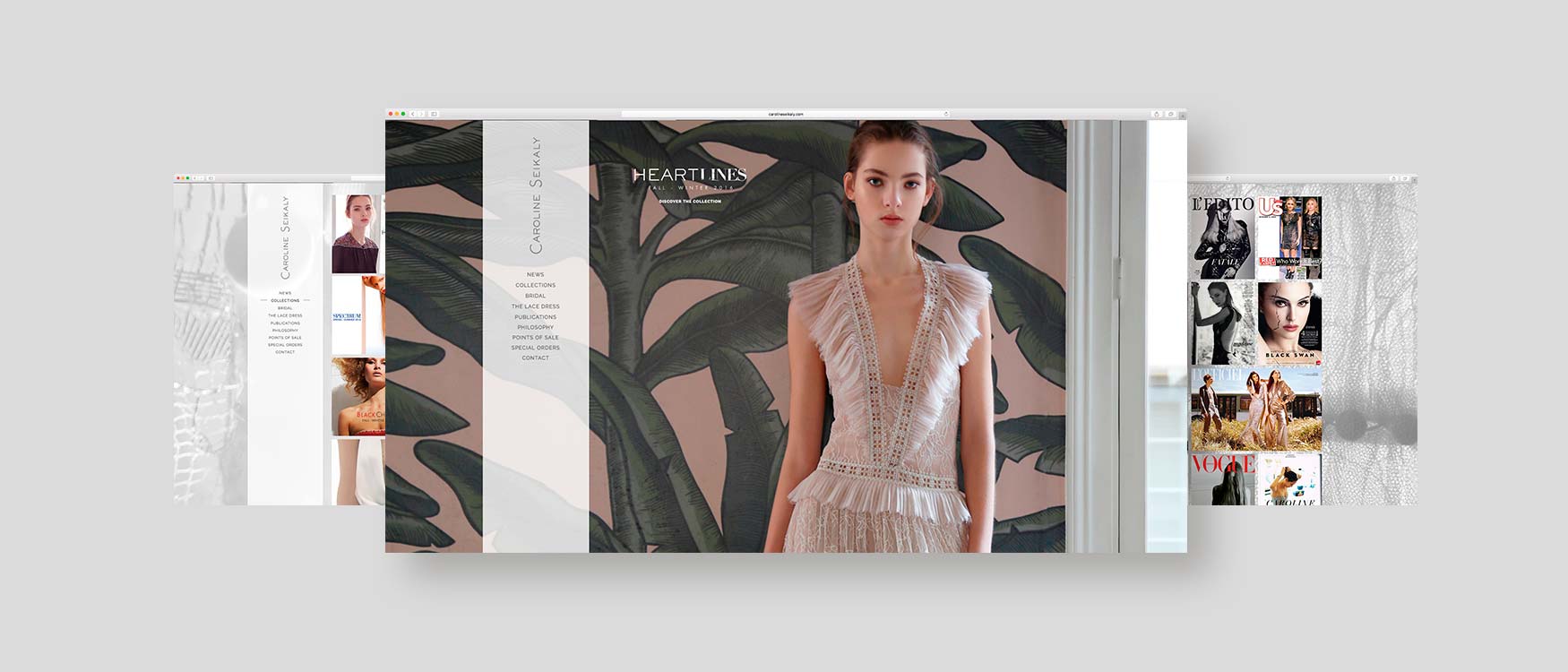 In 2006, following two long extensive experiences at Lagerfeld and Christian Lacroix, Caroline Seikaly creates her own Couture brand and works in collaboration with Diptic on the development of her brand identity. The creative strategy recommended is simple yet controled, elegant yet accessible.