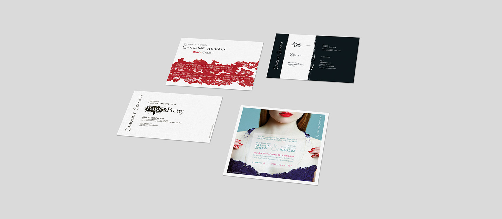 In 2006, following two long extensive experiences at Lagerfeld and Christian Lacroix, Caroline Seikaly creates her own Couture brand and works in collaboration with Diptic on the development of her brand identity. The creative strategy recommended is simple yet controled, elegant yet accessible.